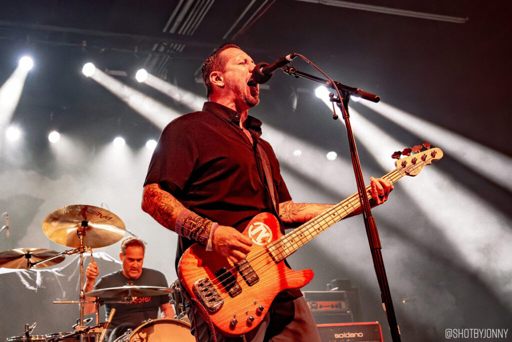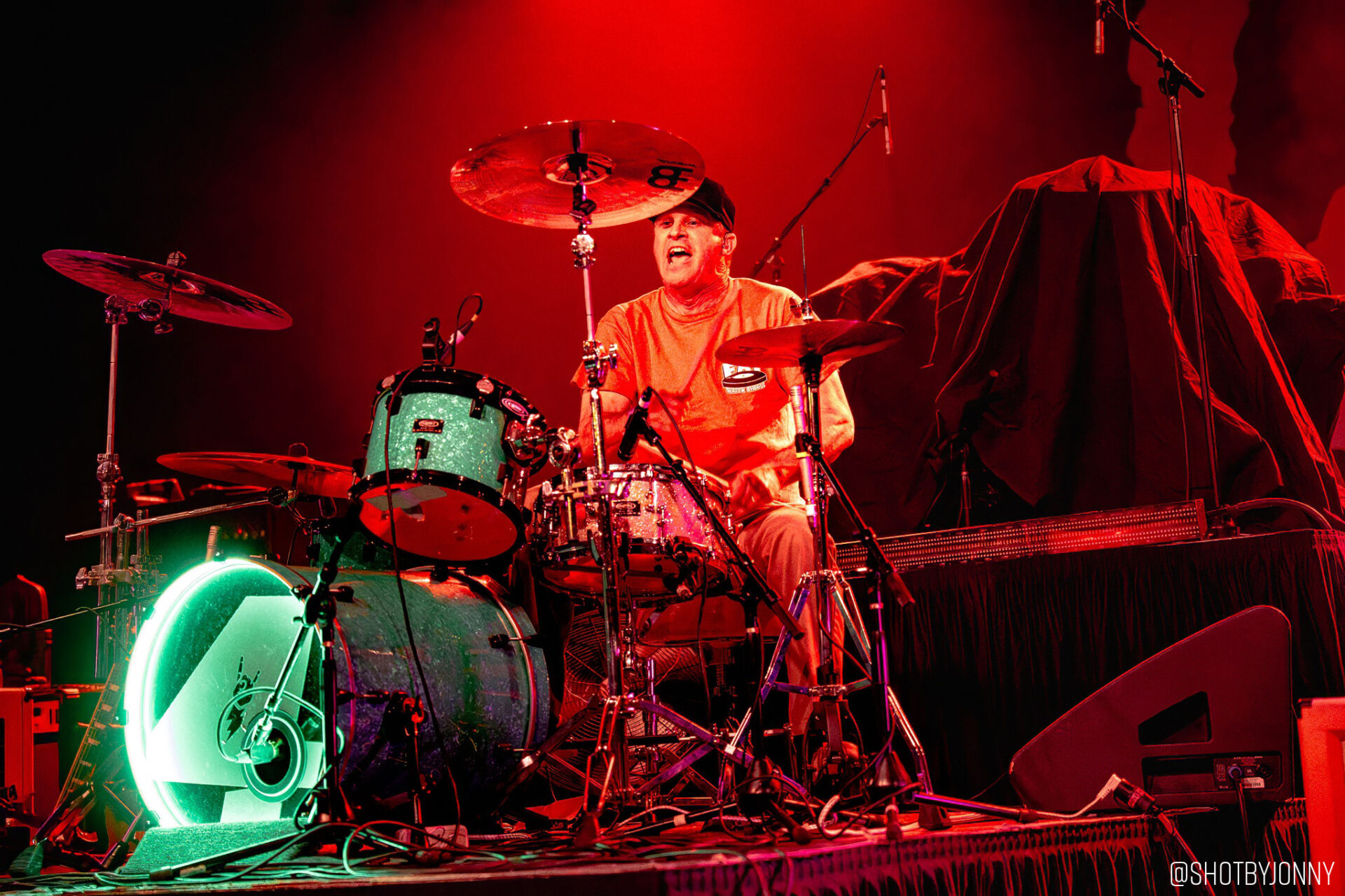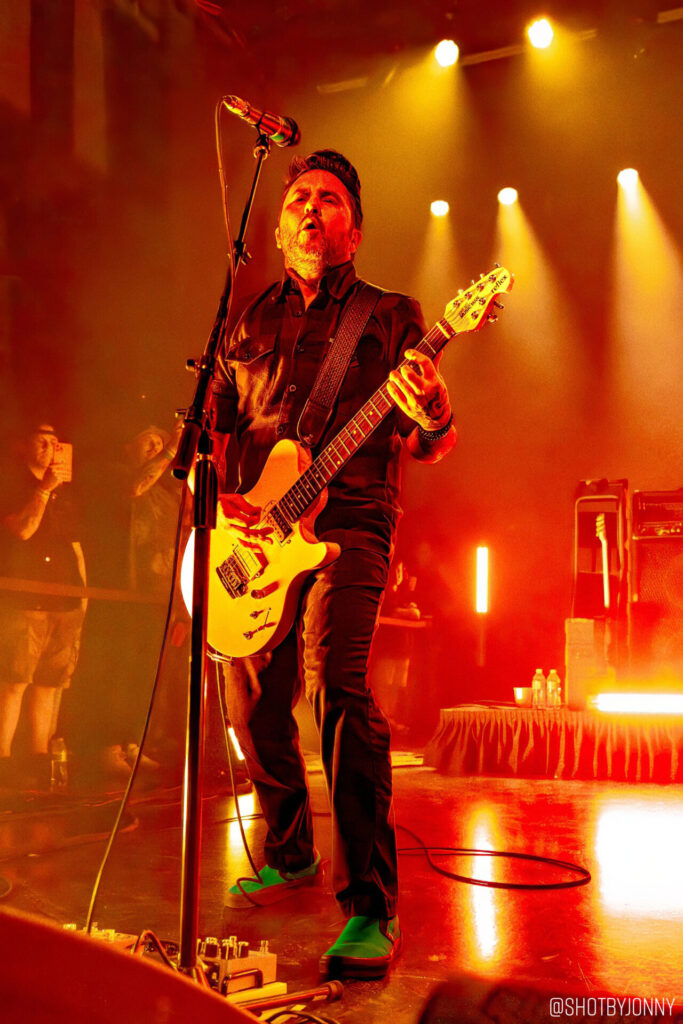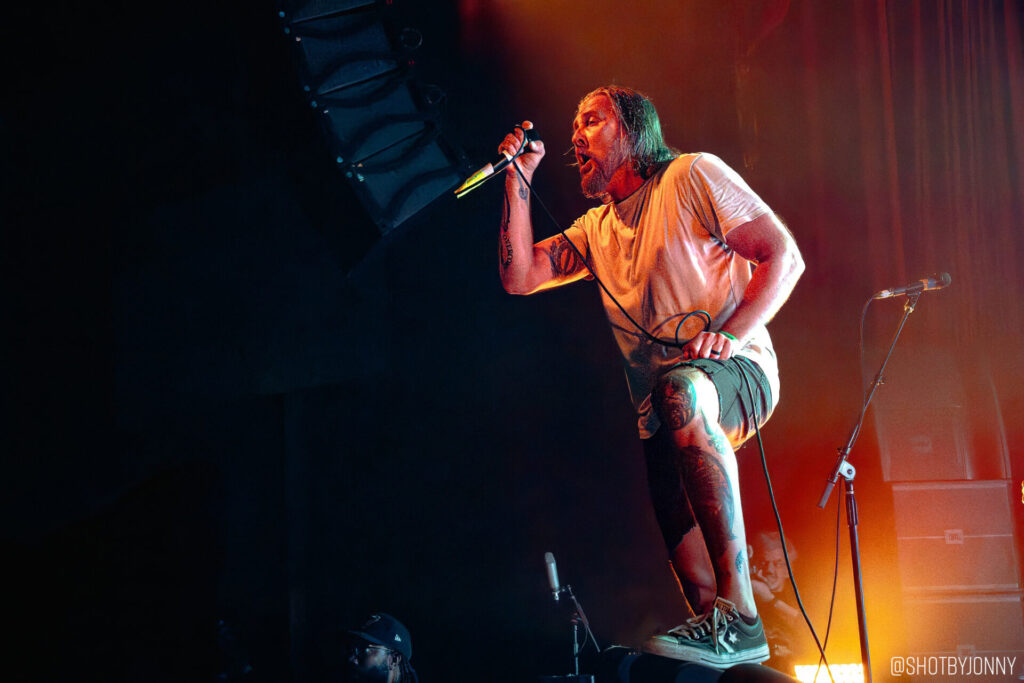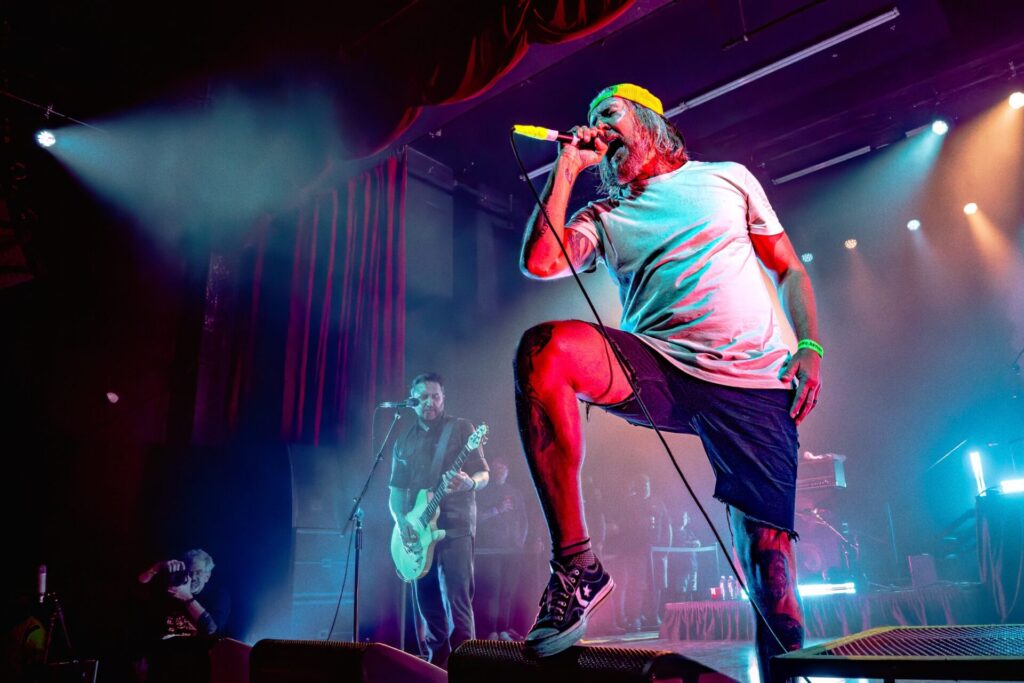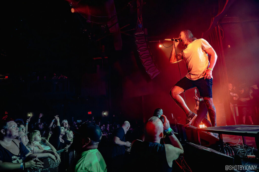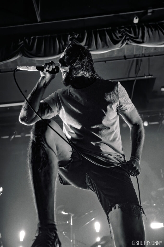 Jason DeVore moved constantly, refusing to hold a fixed position long enough for the stage to settle. His movement drove the set forward, keeping the energy active instead of anchored. At several points, he pulled back toward drummer Chris Dalley before pushing forward again. Those moments broke the forward momentum just enough to reset the energy without interrupting it.