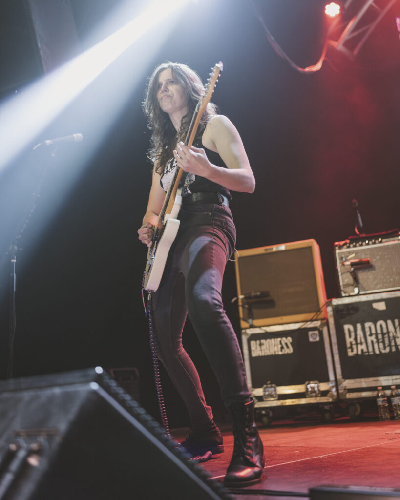 The current lineup of Baroness includes Baizley on vocals and guitar, Gina Gleason on guitar and backing vocals, Nick Jost on bass and keyboards, and Sebastian Thomson on drums. Each member brings their unique style and energy to the band, creating a dynamic and powerful sound. Baizley and Gleason make an especially powerful team, each knowing when to let the other take the spotlight. The entire band seems to have fun and love what they are doing, and that engagement translates well to the crowd. Gleason is especially memorable with her high-energy guitar performance. She knows how to play the crowd and take them on a journey, and showed her skills throughout the night, whether on electric or acoustic guitar. If Joan Jett and Sean Yseult had a musical love child, I’m pretty sure it would be Gleason.