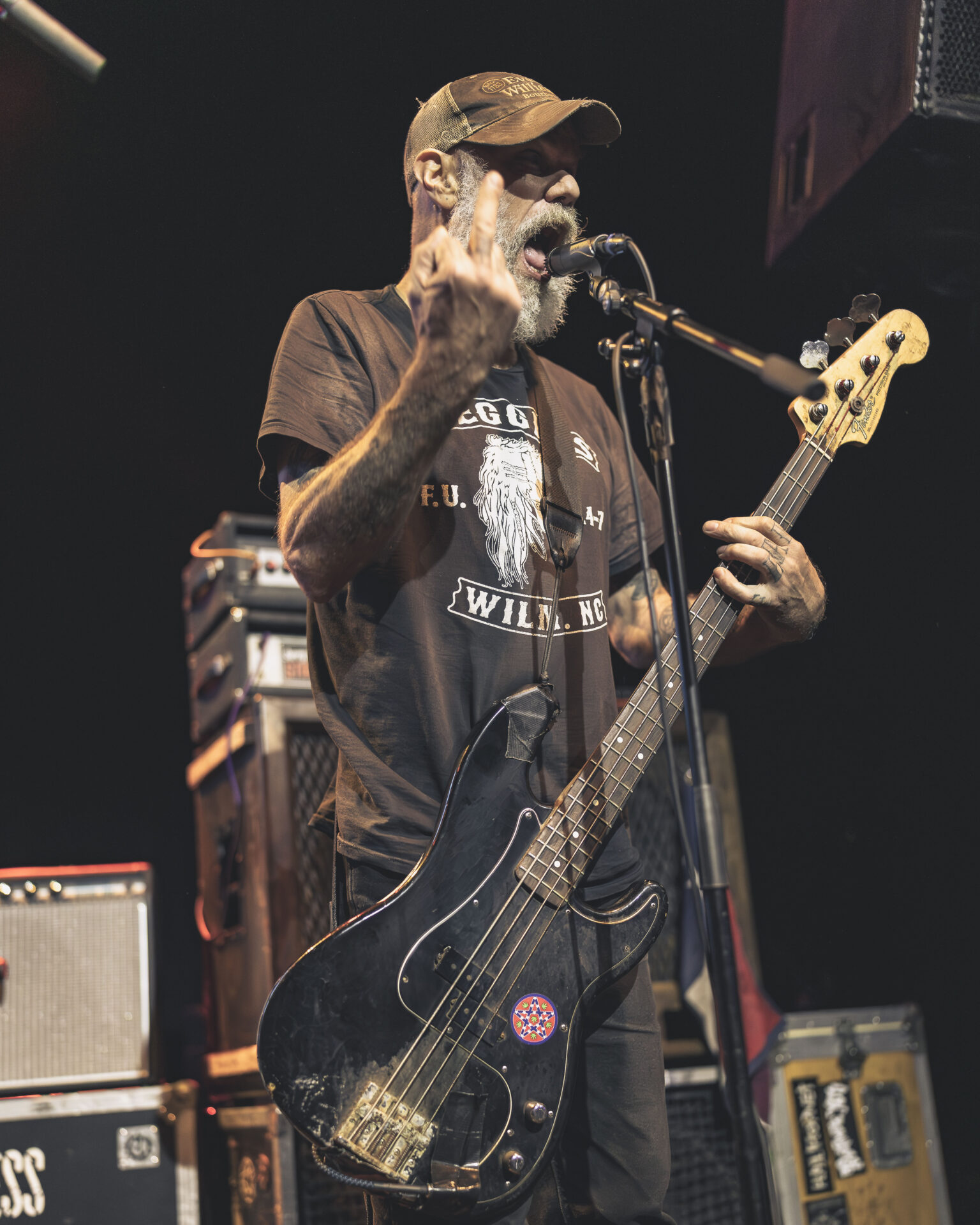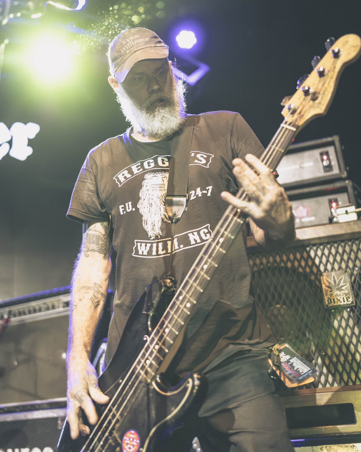 Weedeater, a doom metal band from Wilmington, North Carolina, was an interesting opening act. Lead vocalist and bassist Dave “Dixie” Collins plays bass guitar in a way that I’ve not seen before; I found myself wondering if he’d played the upright bass before turning to bass guitar and doom metal because of how he handles his guitar. Collins’ bass riffs are the driving percussive force behind the music, with very discernible signature riffs. Because the Walter Studios stage is small, the band was double-stacked with Baroness’s equipment, placing drummer Ramzi Atayeh at the front of stage, which made for an even louder and more aggressive performance. Lead guitarist Dave Shepherd is a quieter presence on stage, making him the right counter to Collins’ rebellious stage presence.