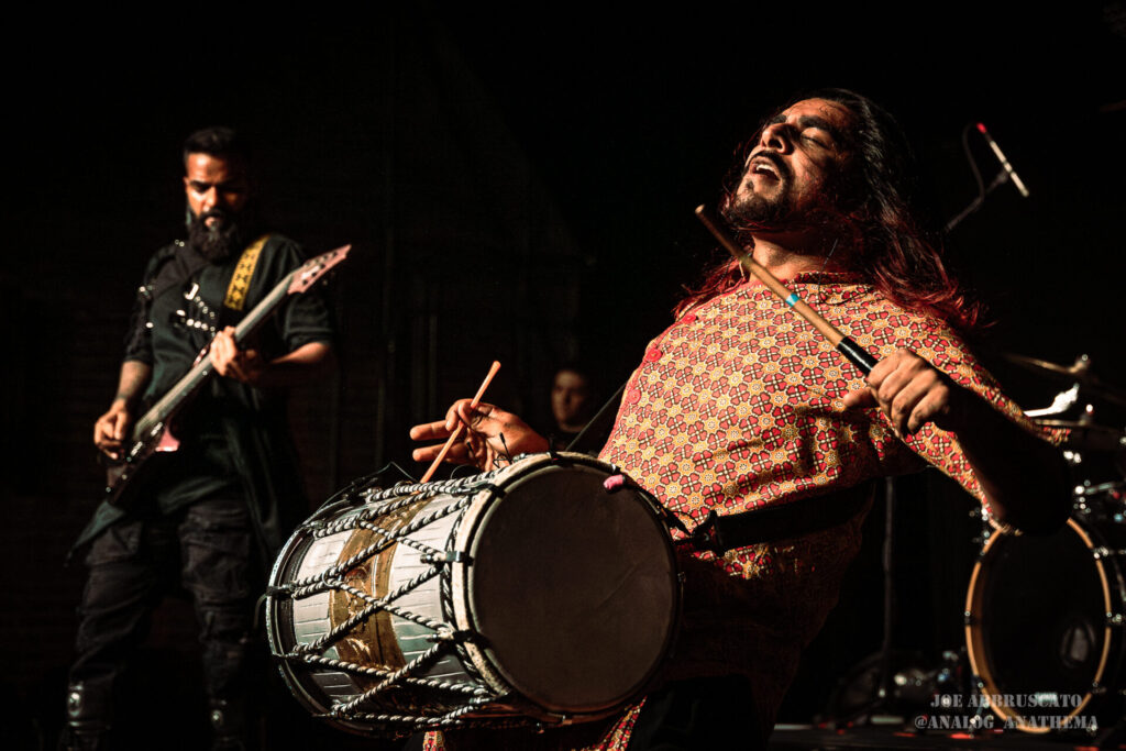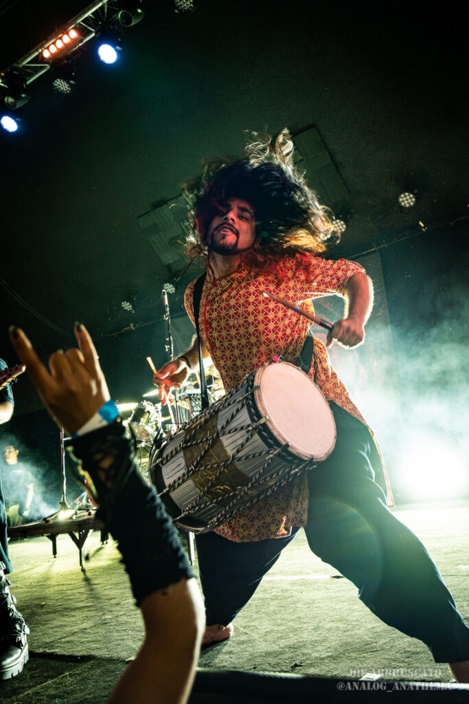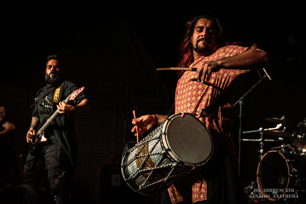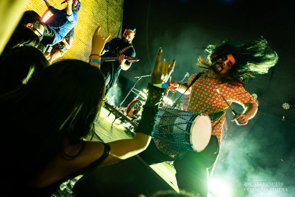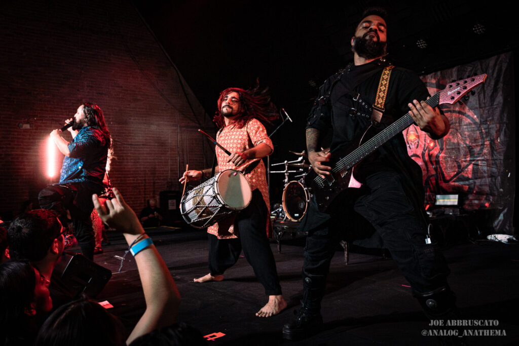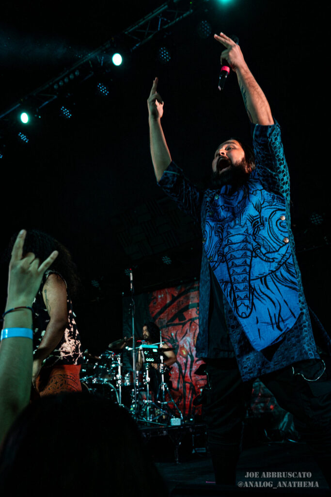 The setlist leaned heavily into newer material, with standout performances of “Nu Delhi”, “Tadka”, “Halla Bol”, and “Bekhauf” igniting some of the night’s biggest reactions. The title track from their 2025 album Nu Delhi, a record that honors their roots and musical identity, hit the crowd with an anthemic weight, while “Tadka,” a chaotic tribute to Indian cuisine, brought a playful yet thunderous groove to the pit; everyone in the crowd was left desiring a homecooked meal. “Bekhauf”, which found Bloodywood partnered with Baby Metal (at the show, their part was performed via back track), features a defiant tone and cross-cultural flair, served as a powerful reminder of the band’s mission to push boundaries and inspire through their music. By the time the final notes rang out, The Nile Theater had been transformed into a sweat-soaked, euphoric celebration. Bloodywood isn’t just visiting stages like this anymore; they’re owning them the world over.