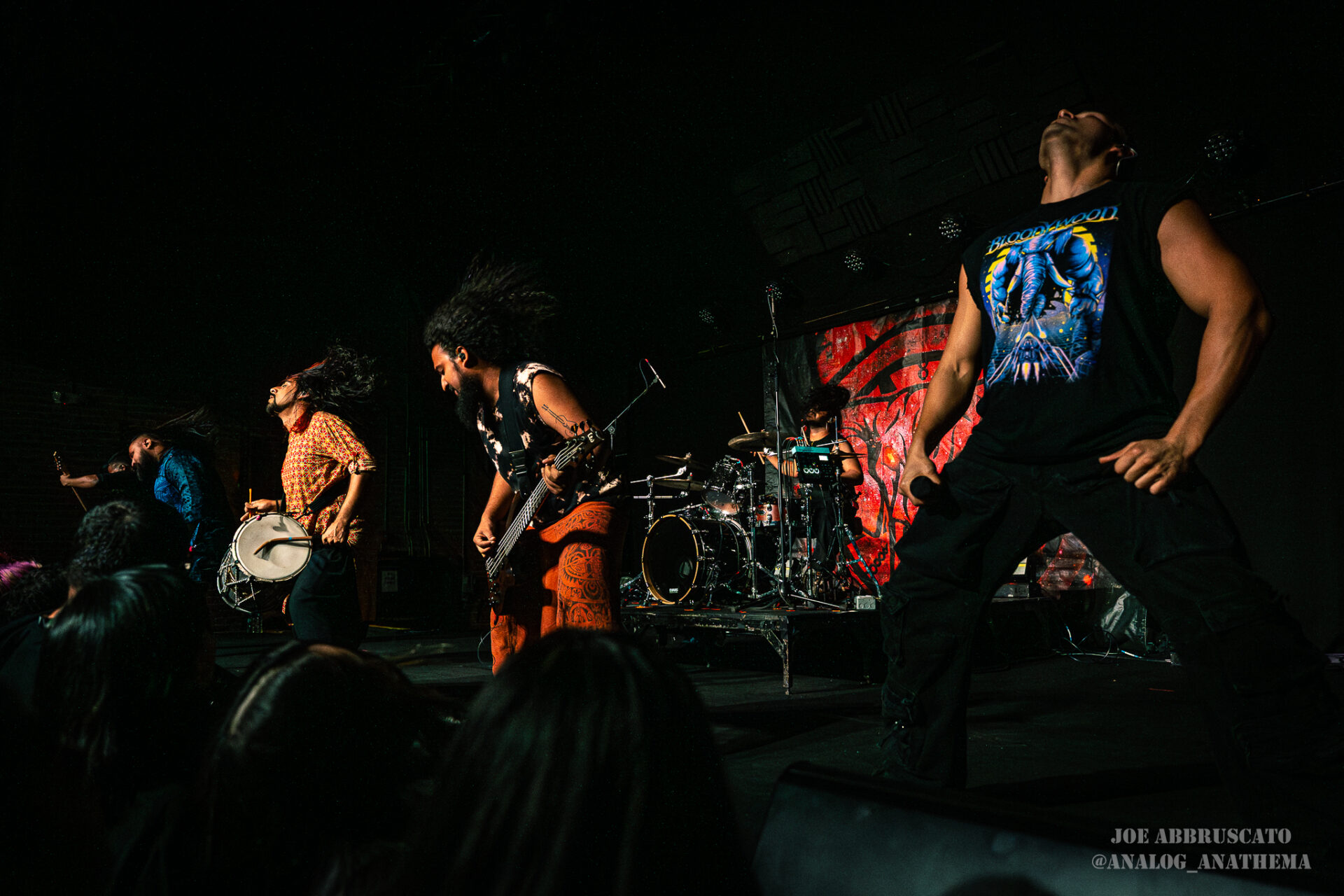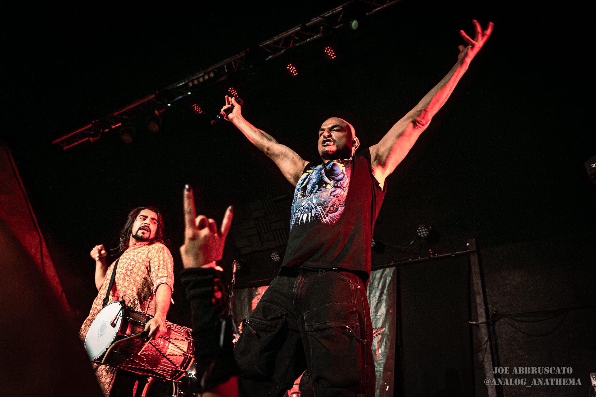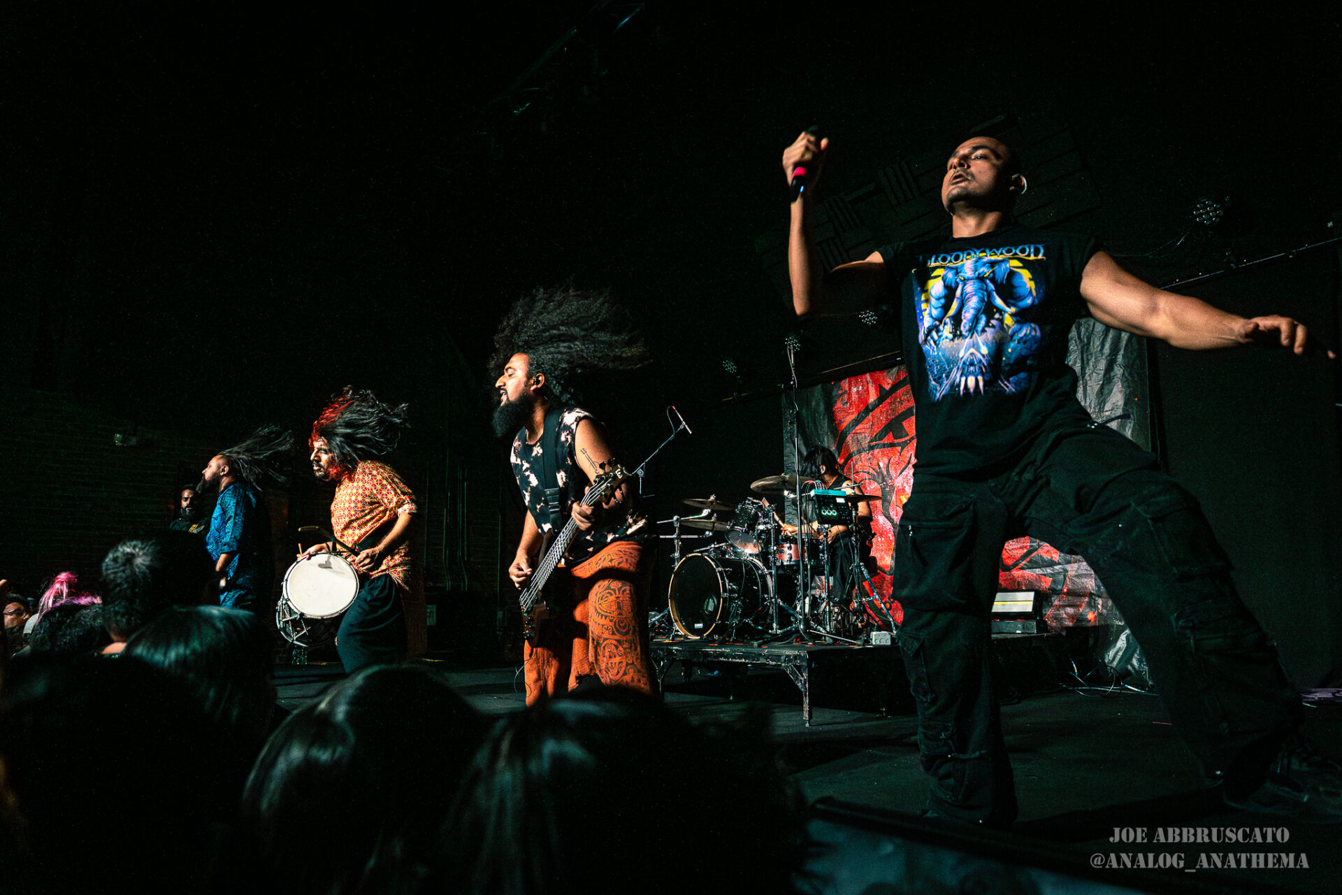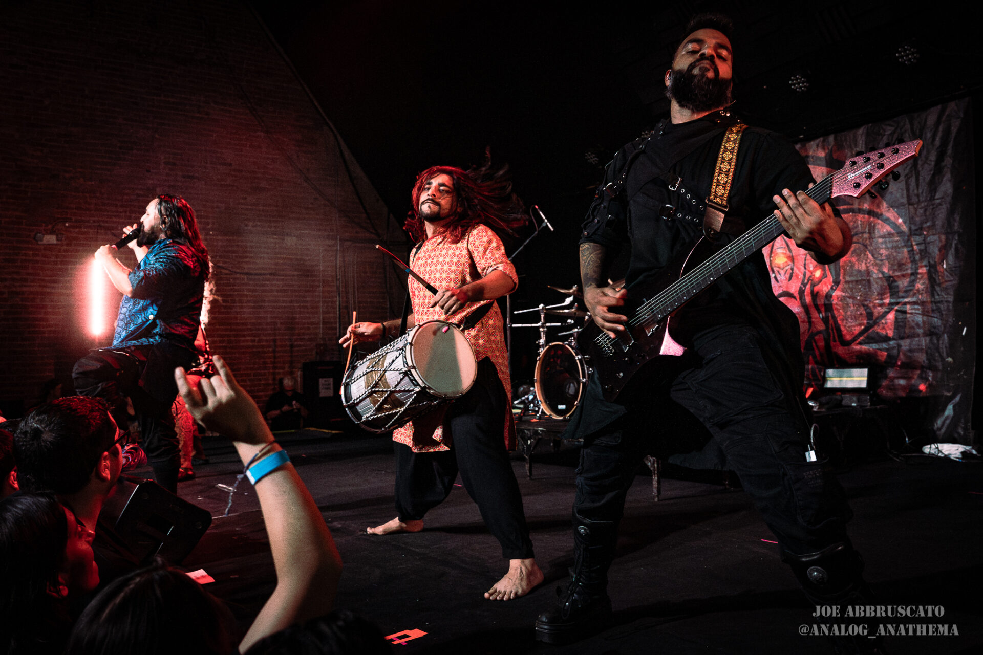 The return of Bloodywood to The Nile Theater in Mesa, Arizona on 4/24, felt less like a tour stop and more like a homecoming for one of modern metal’s most globally unique forces. Since forming in New Delhi and touring internationally since 2019, Bloodywood has carved out a signature sound that fuses nu metal, rap, and traditional Indian instrumentation into something that is both sonically punishing and culturally celebratory. That energy translated immediately to the packed venue, where the crowd surged from the opening notes, feeding off the band’s relentless intensity. From conducting circle pits and a wall of death to juggling traditional instruments and sounds, Bloodywood’s ability to balance crushing riffs with cultural authenticity has made them stand out on the world stage, and their return to the Valley proved just how deeply that connection now runs with their U.S. audience.