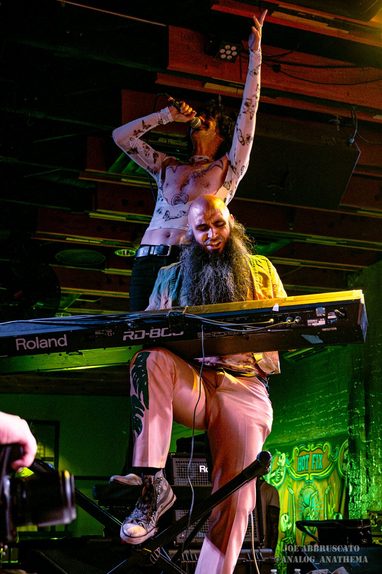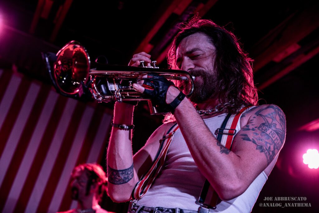Fronted by Eric Nally (who began the show with his shirt mostly torn off), Foxy Shazam has a stage presence that is singular and unique to them. From Sky White playing keyboard while essentially crowd surfing (forever changing the rules on what a keyboardist can accomplish athletically) and Alex Nauth playing the trumpet while bounding into the air, to Teddy Aitkins going savage on the drums with Trevor “Existential Youth” Erb and Devin Williams doing their whirling dervish impression on bass and guitar (respectively) on either side of him, all while Nally is flipping and somersaulting across the stage. There’s no stopping any of them once the music kicks off.