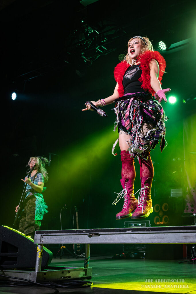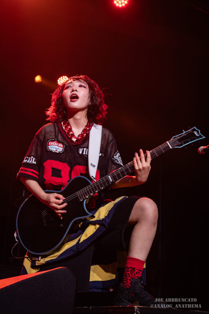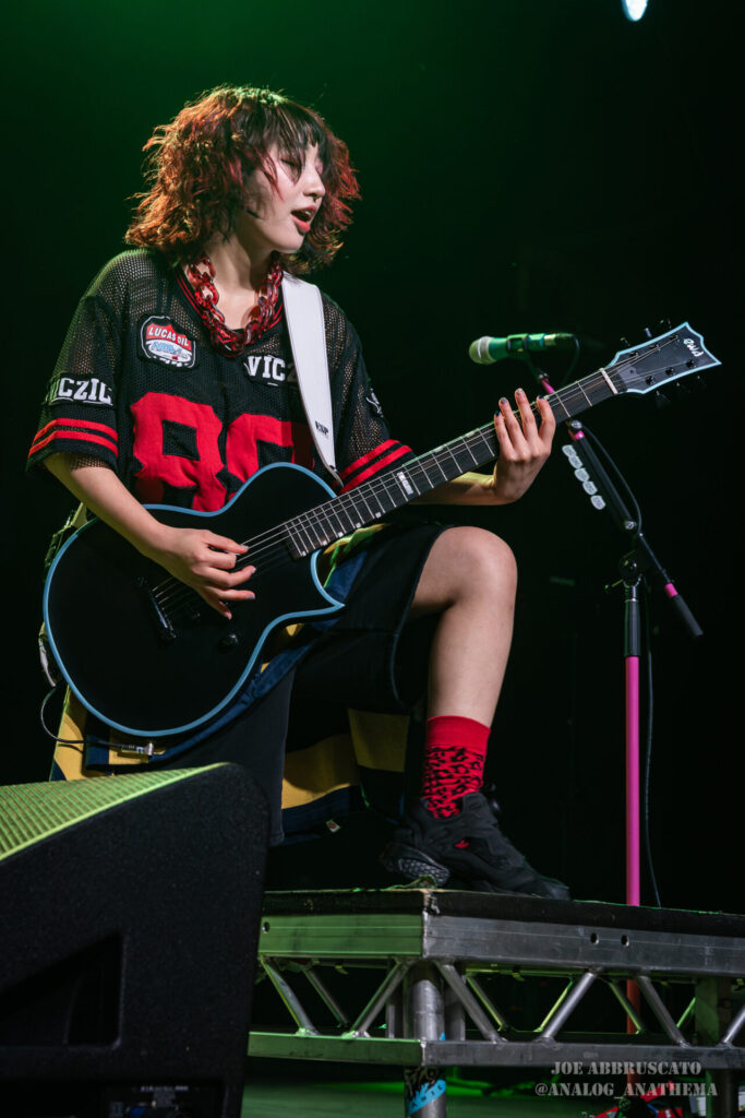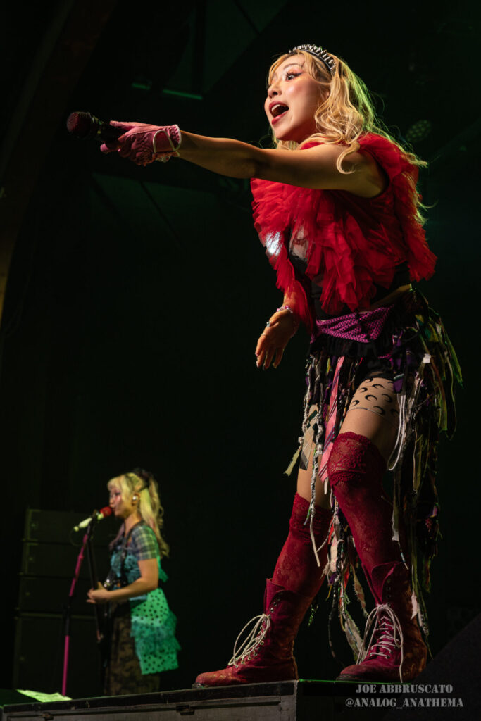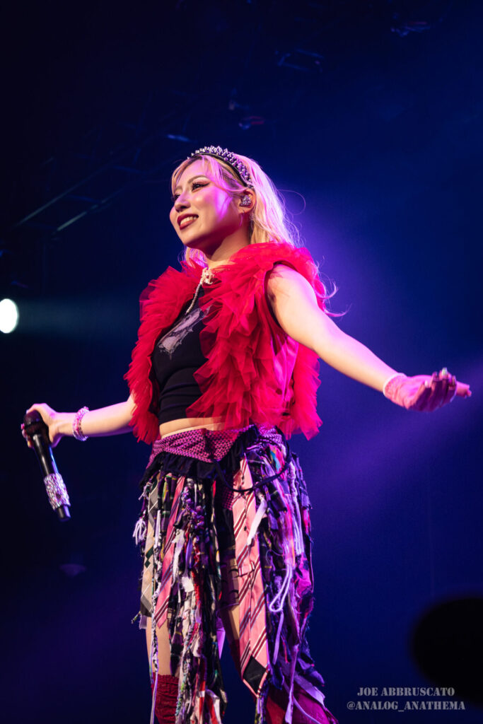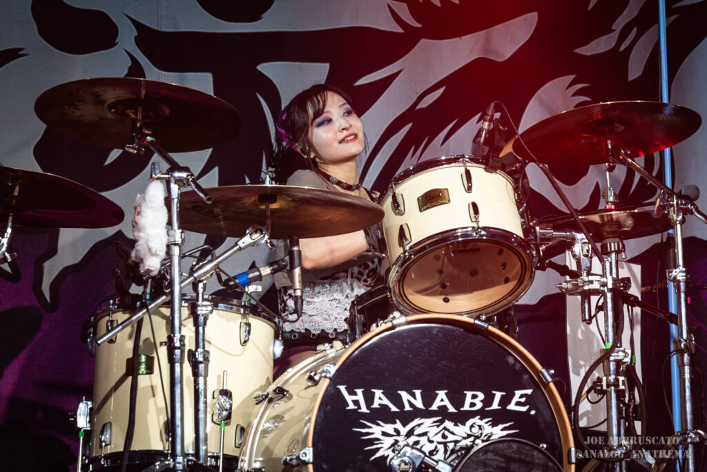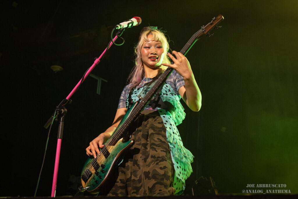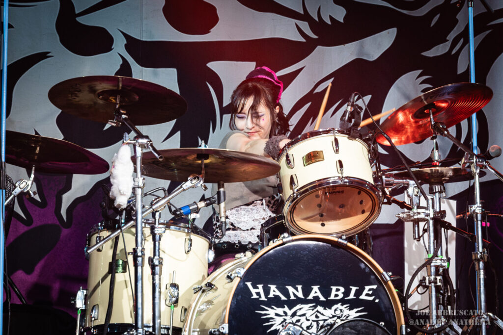 What made the performance stand out wasn’t just the novelty of the genre fusion, but how tight and intentional it all felt. HaNaBie. kicked things off with “NEET GAME,” landing it with punishing force that served as a mere appetizer for the set list to follow. “TOUSOU” and “O•TA•KU Lovely Densetsu” injected a chaotic, almost comedic energy into the set with Yukina, Matsuri, and Hettsu jumping and bouncing around stage while also shifting into bonechilling guitar riffs and screams. Underlying the playfulness of their look, the band’s musicianship was razor sharp. Every breakdown hit with mechanical precision, every tempo shift locked in perfectly. Nothing felt sterile or preplanned; instead, there was a palpable sense of joy in it all, a willingness to embrace contradiction: cute versus crushing, polished versus feral. That duality is the band’s identity, and in Phoenix, it resonated deeply with a crowd that clearly understood the assignment.