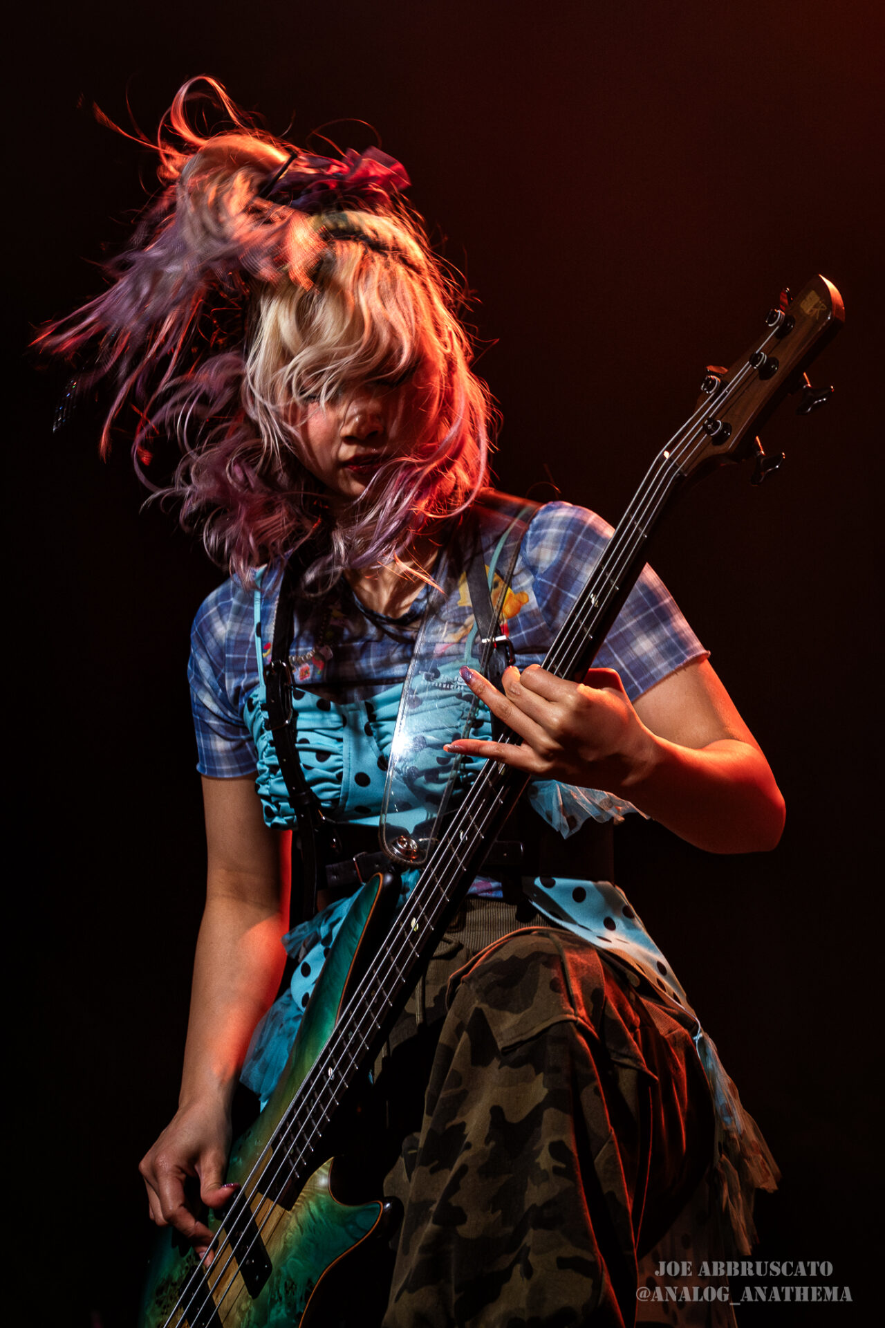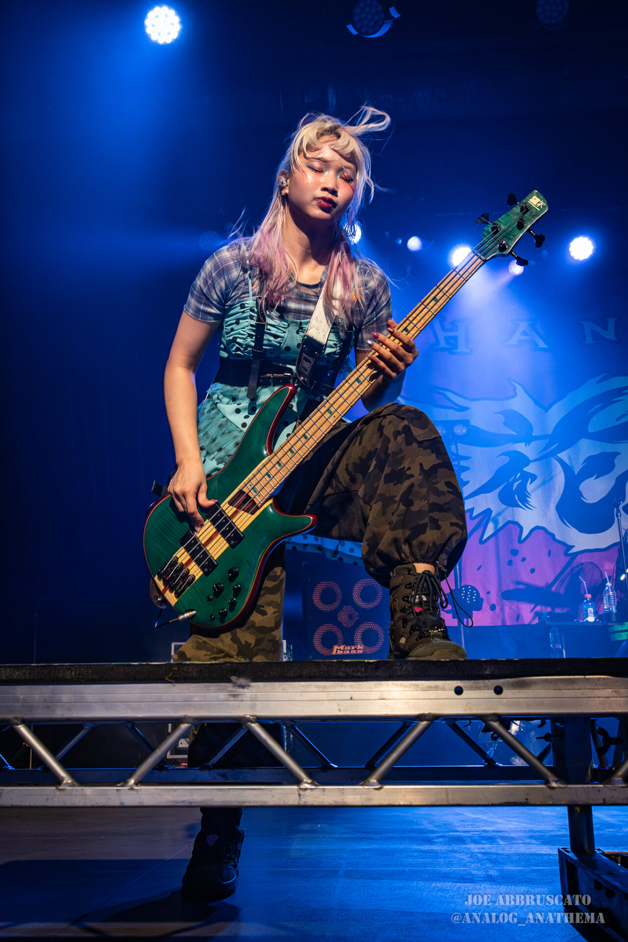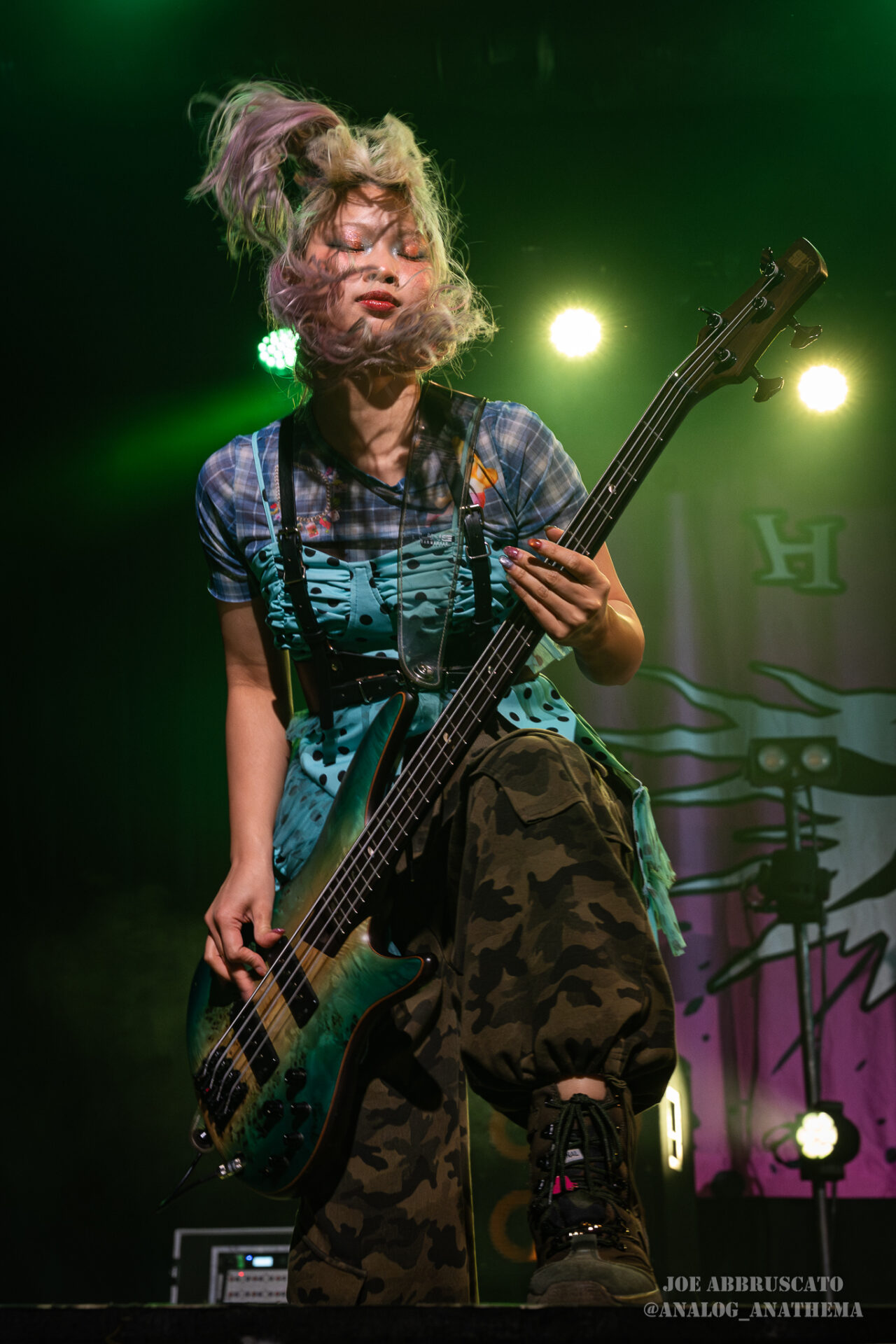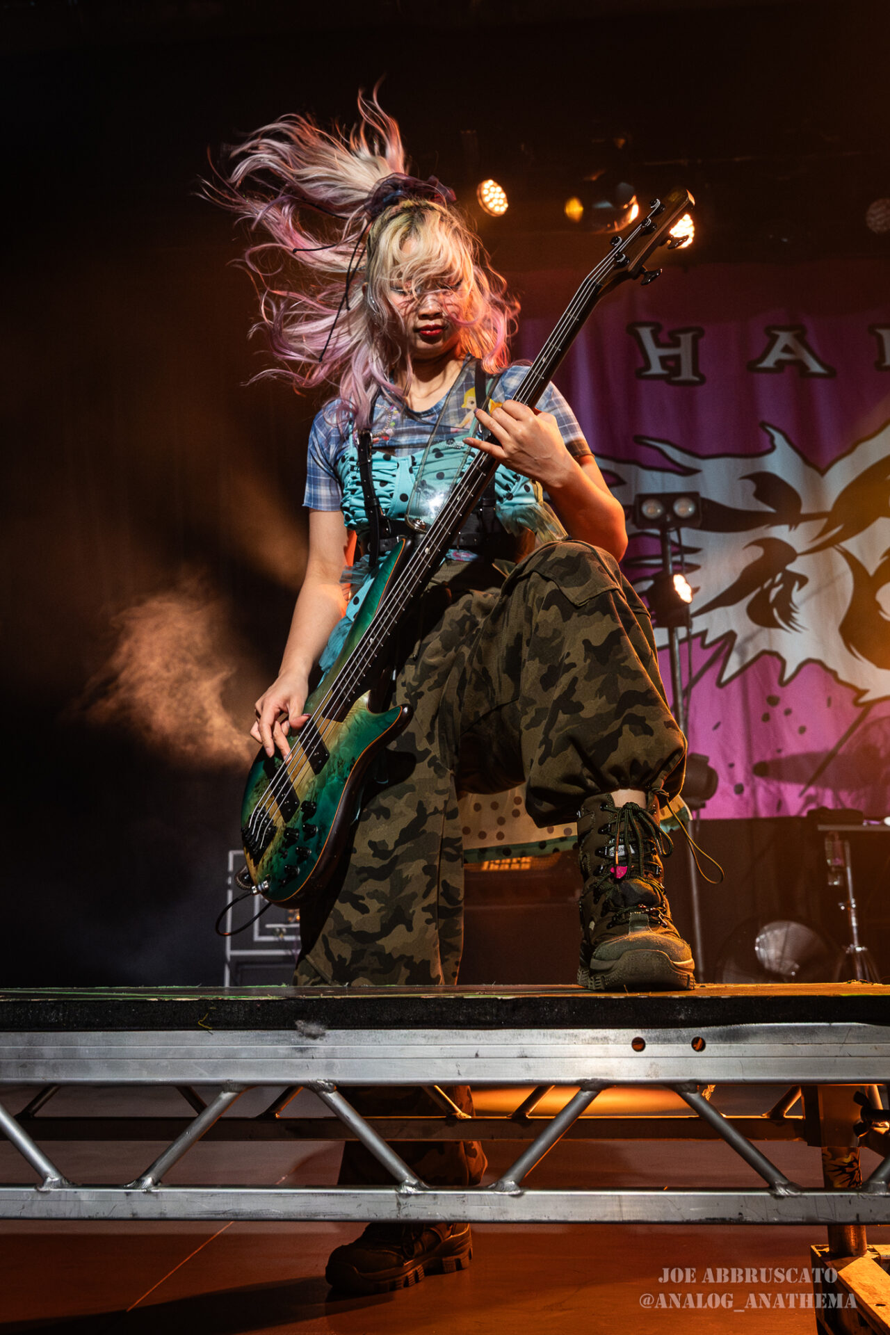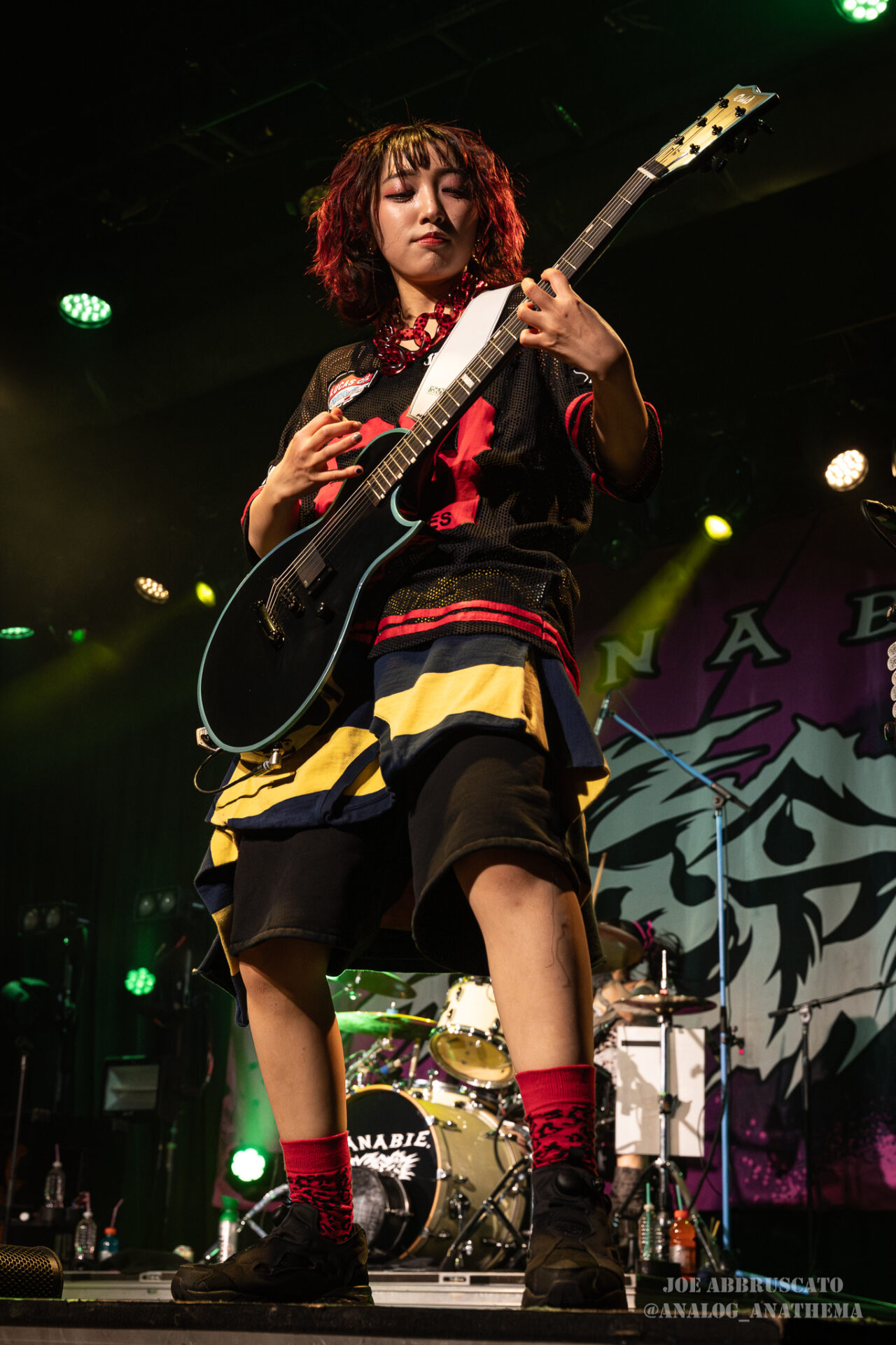 What made the performance stand out wasn’t just the novelty of the genre fusion, but how tight and intentional it all felt. HaNaBie. kicked things off with “NEET GAME,” landing it with punishing force that served as a mere appetizer for the set list to follow. “TOUSOU” and “O•TA•KU Lovely Densetsu” injected a chaotic, almost comedic energy into the set with Yukina, Matsuri, and Hettsu jumping and bouncing around stage while also shifting into bonechilling guitar riffs and screams. Underlying the playfulness of their look, the band’s musicianship was razor sharp. Every breakdown hit with mechanical precision, every tempo shift locked in perfectly. Nothing felt sterile or preplanned; instead, there was a palpable sense of joy in it all, a willingness to embrace contradiction: cute versus crushing, polished versus feral. That duality is the band’s identity, and in Phoenix, it resonated deeply with a crowd that clearly understood the assignment.