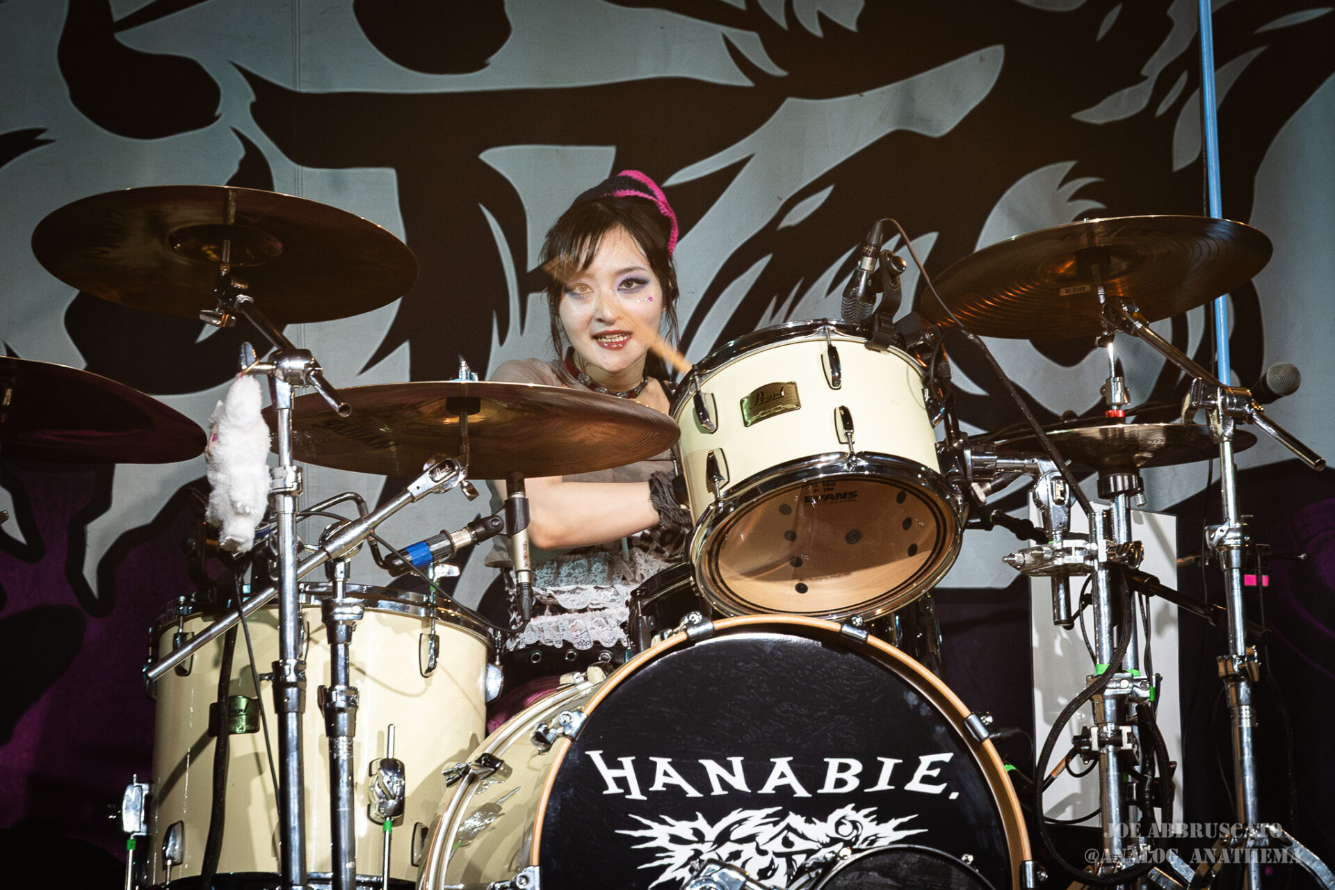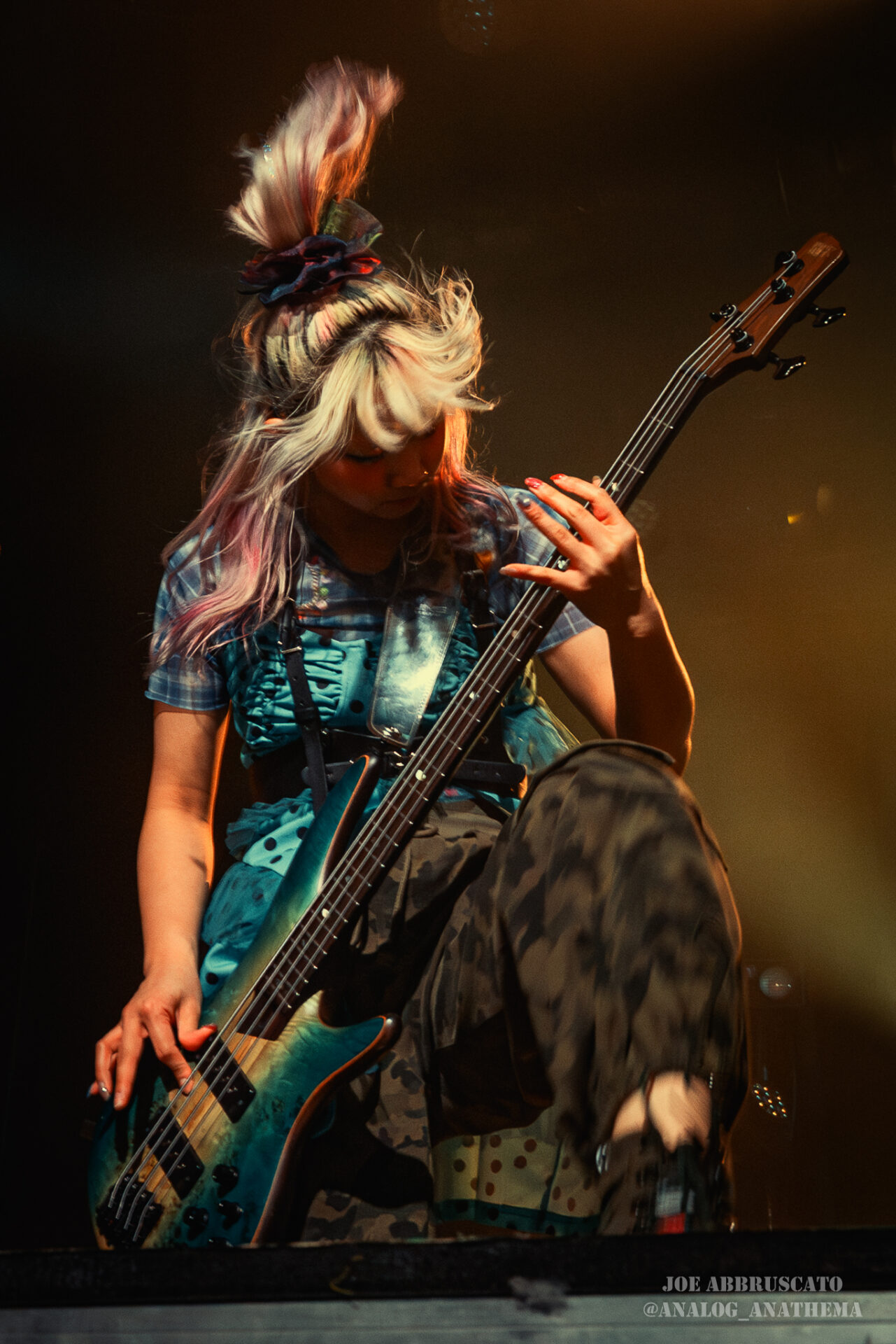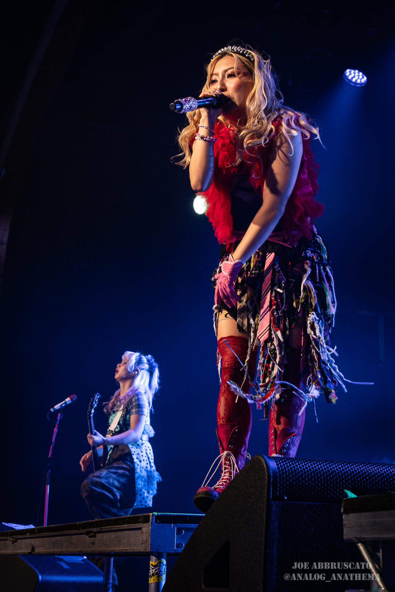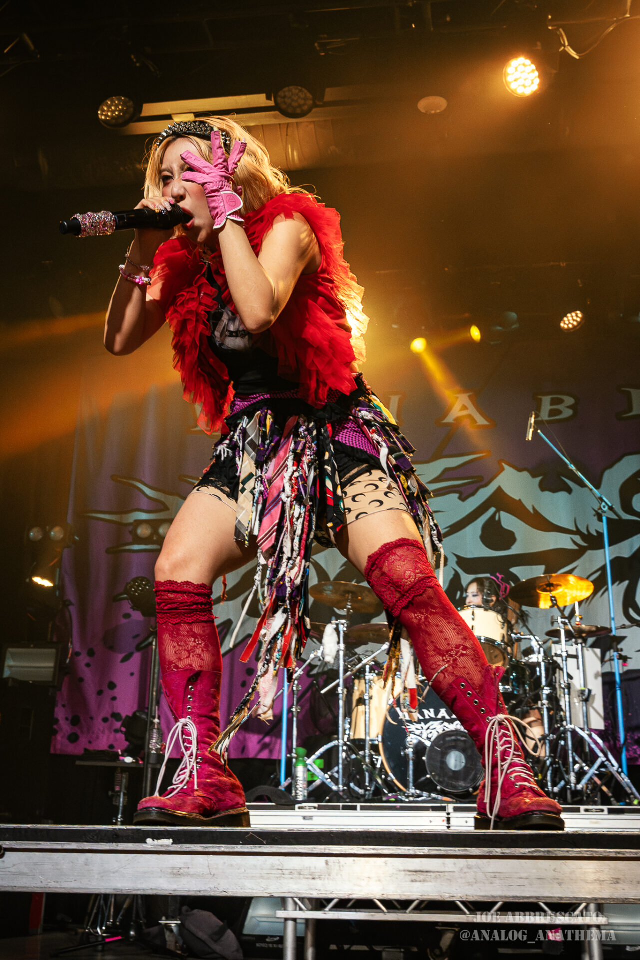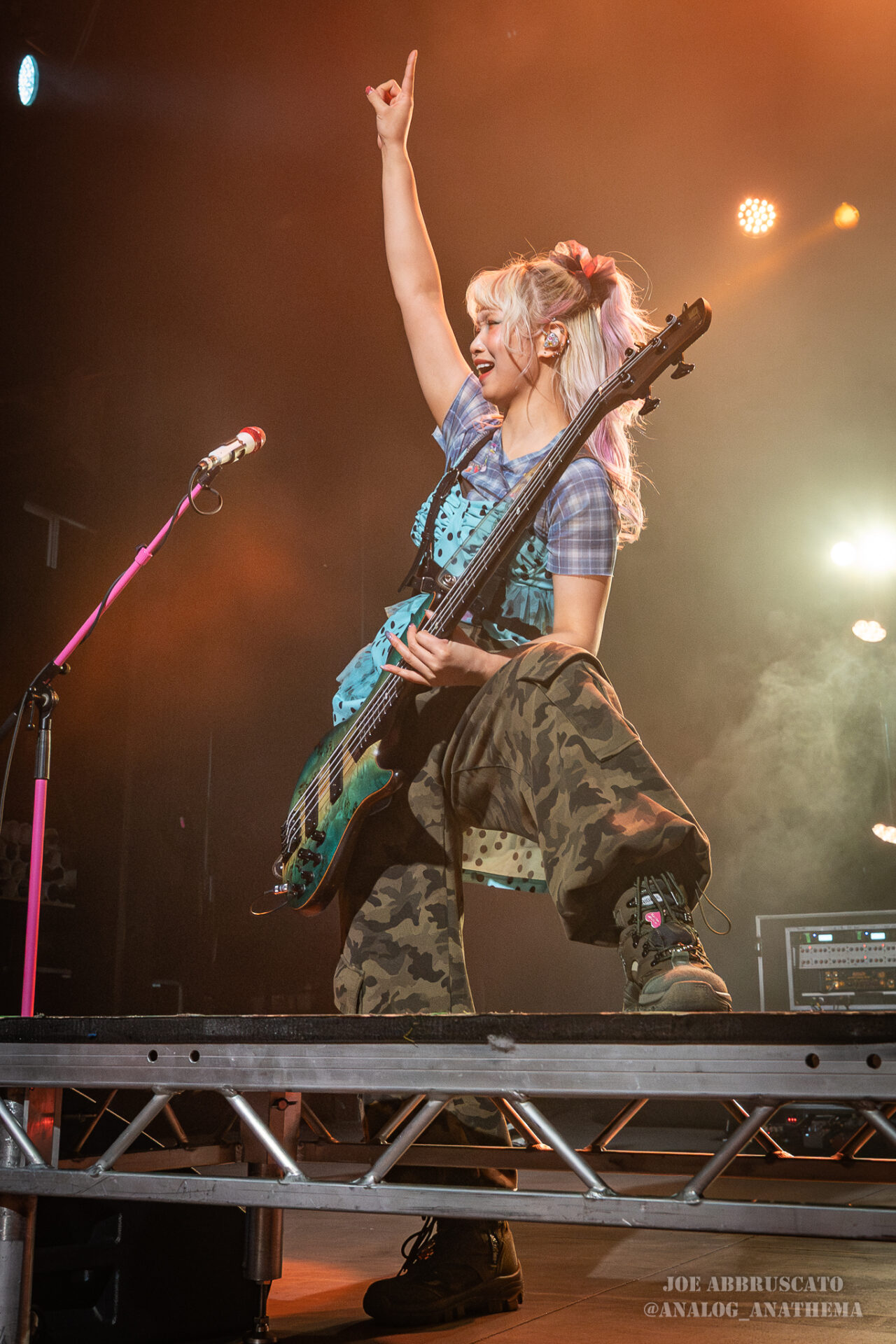 What made the performance stand out wasn’t just the novelty of the genre fusion, but how tight and intentional it all felt. HaNaBie. kicked things off with “NEET GAME,” landing it with punishing force that served as a mere appetizer for the set list to follow. “TOUSOU” and “O•TA•KU Lovely Densetsu” injected a chaotic, almost comedic energy into the set with Yukina, Matsuri, and Hettsu jumping and bouncing around stage while also shifting into bonechilling guitar riffs and screams. Underlying the playfulness of their look, the band’s musicianship was razor sharp. Every breakdown hit with mechanical precision, every tempo shift locked in perfectly. Nothing felt sterile or preplanned; instead, there was a palpable sense of joy in it all, a willingness to embrace contradiction: cute versus crushing, polished versus feral. That duality is the band’s identity, and in Phoenix, it resonated deeply with a crowd that clearly understood the assignment.