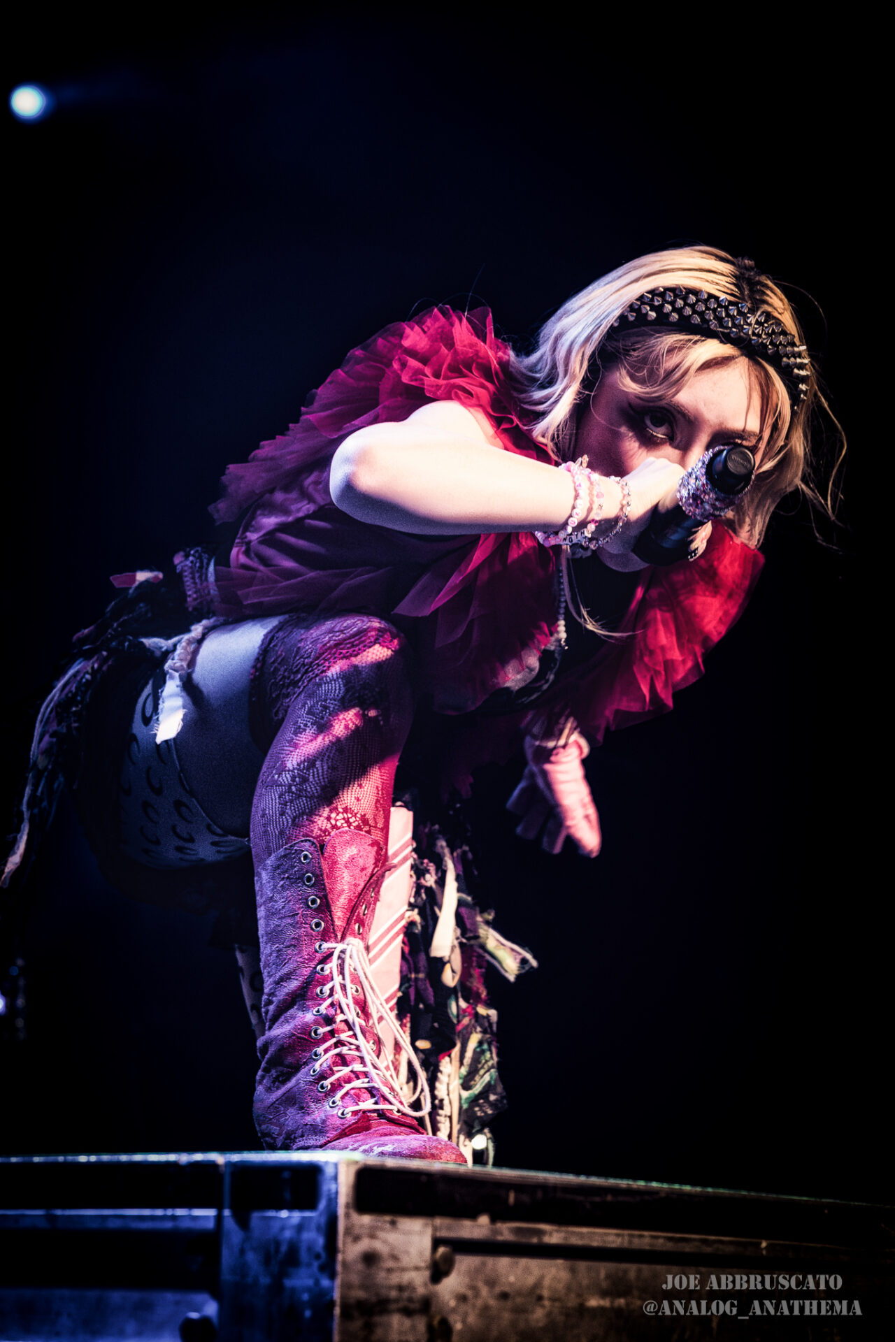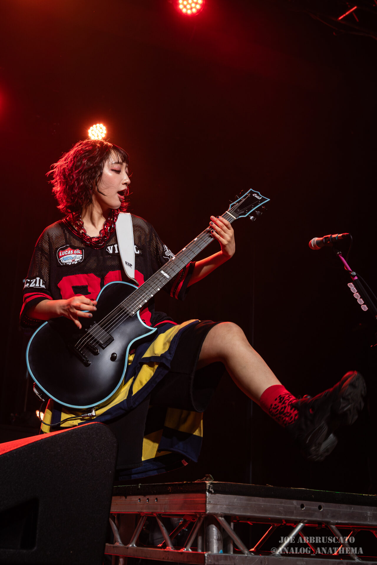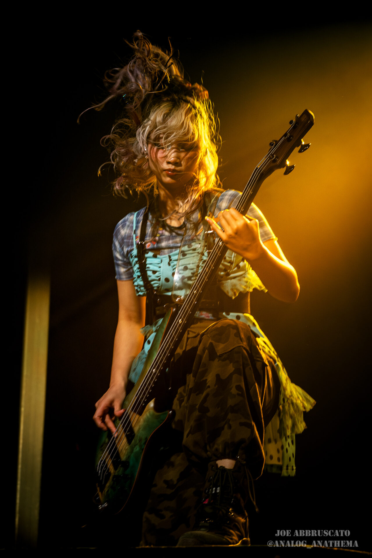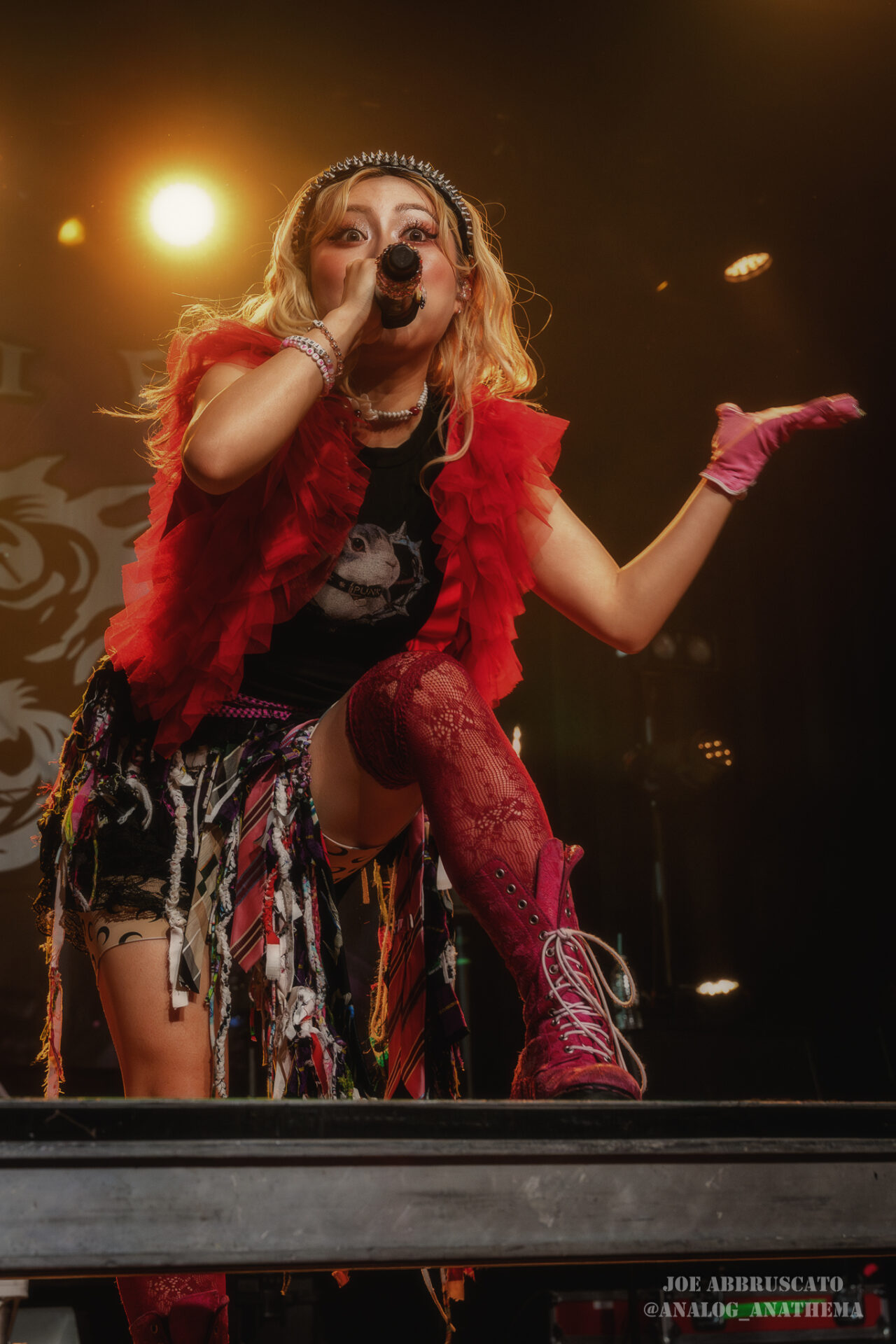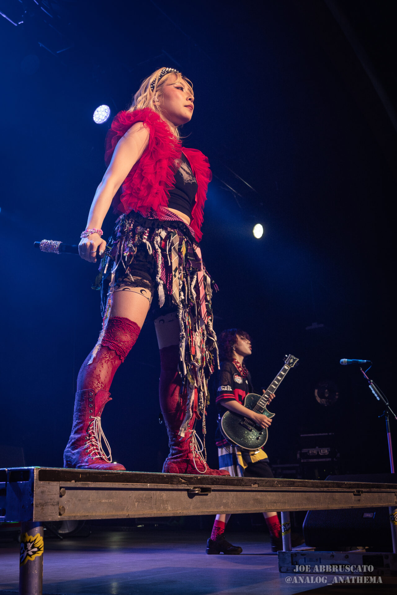 What made the performance stand out wasn’t just the novelty of the genre fusion, but how tight and intentional it all felt. HaNaBie. kicked things off with “NEET GAME,” landing it with punishing force that served as a mere appetizer for the set list to follow. “TOUSOU” and “O•TA•KU Lovely Densetsu” injected a chaotic, almost comedic energy into the set with Yukina, Matsuri, and Hettsu jumping and bouncing around stage while also shifting into bonechilling guitar riffs and screams. Underlying the playfulness of their look, the band’s musicianship was razor sharp. Every breakdown hit with mechanical precision, every tempo shift locked in perfectly. Nothing felt sterile or preplanned; instead, there was a palpable sense of joy in it all, a willingness to embrace contradiction: cute versus crushing, polished versus feral. That duality is the band’s identity, and in Phoenix, it resonated deeply with a crowd that clearly understood the assignment.