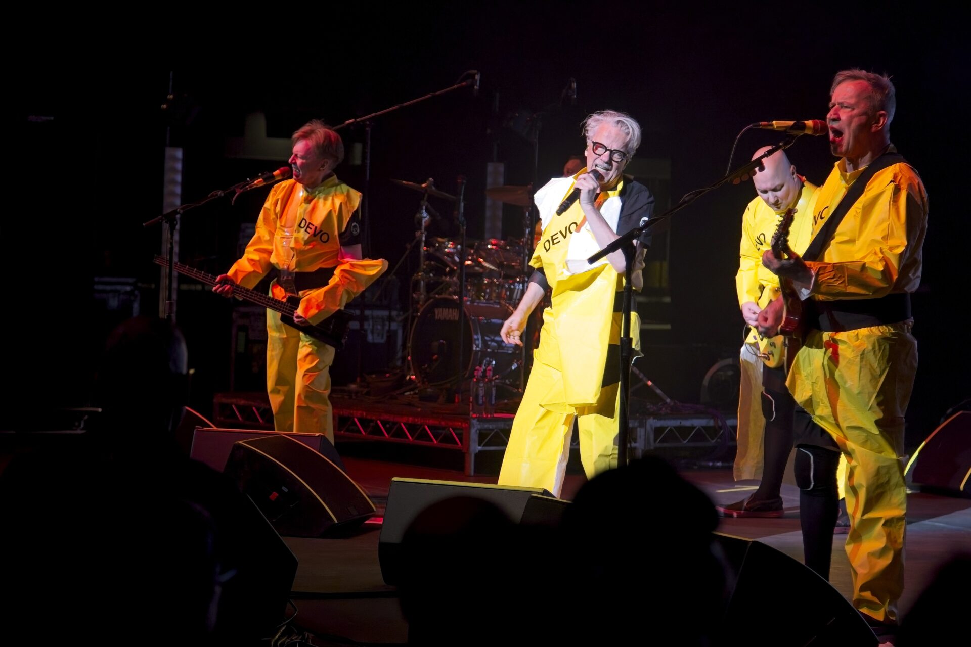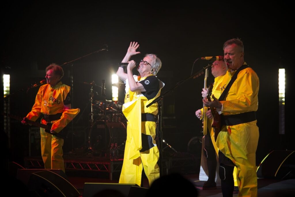 Phoenix, AZ—Devo played the first night of its “Mutate, Don’t Stagnate” tour at the Arizona Financial Theatre on April 12, 2026. It was a show filled with classic songs, mixed with video graphics, new and old. It was the Devo we know, and the Devo we need right now. The crowd reflected the diversity and creativity of the legendary niche new wave group; red hats and Devo costumes were plentiful, and in some cases, red hats were handmade by fans, young and experienced alike.